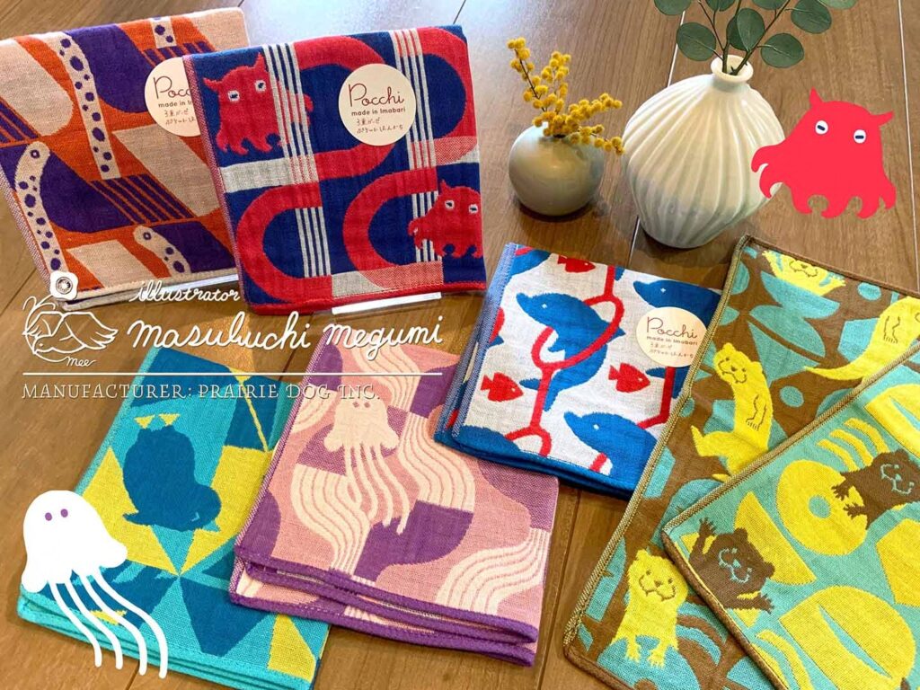タオルやハンカチ、バッグなど布ものの製造卸販売を行っている「プレーリードッグ」さんにご依頼を頂き商品のための柄を描かせて頂いております。